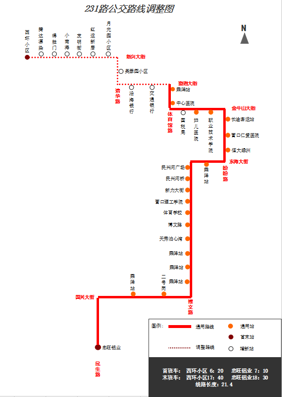 “西環(huán)小區(qū)”—新興大街—清華路—渤海大街—體育館路—金牛山大街—盼盼路—東海大街—博文路—國(guó)興大街—“忠旺鋁業(yè)”。