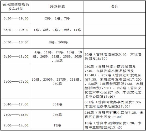 5.通養(yǎng)老服務(wù)中心班次:12路,2月15日—18日(三十至初三)首班車(chē)6:12(火車(chē)站)調(diào)整為6:30,其余班次不變;14路,2月15日—18日(三十至初三)首班車(chē)6:00(公司公司)調(diào)整為6:30, 其余班次不變。