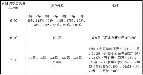 (一)2月15日、16日(三十、初一)首班延后發(fā)車(chē)、末班提前收車(chē),具體明細(xì)見(jiàn)下表: