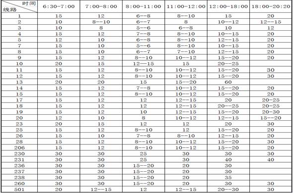 (四)2月19日至2月22日(初四至初七)常規(guī)公交線路日計(jì)劃班次恢復(fù)雙休日發(fā)車(chē)時(shí)間表,根據(jù)各時(shí)段客流變化情況,適時(shí)增減運(yùn)營(yíng)班次。